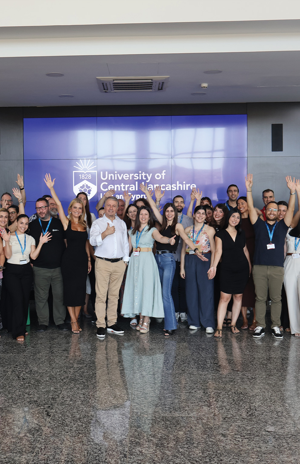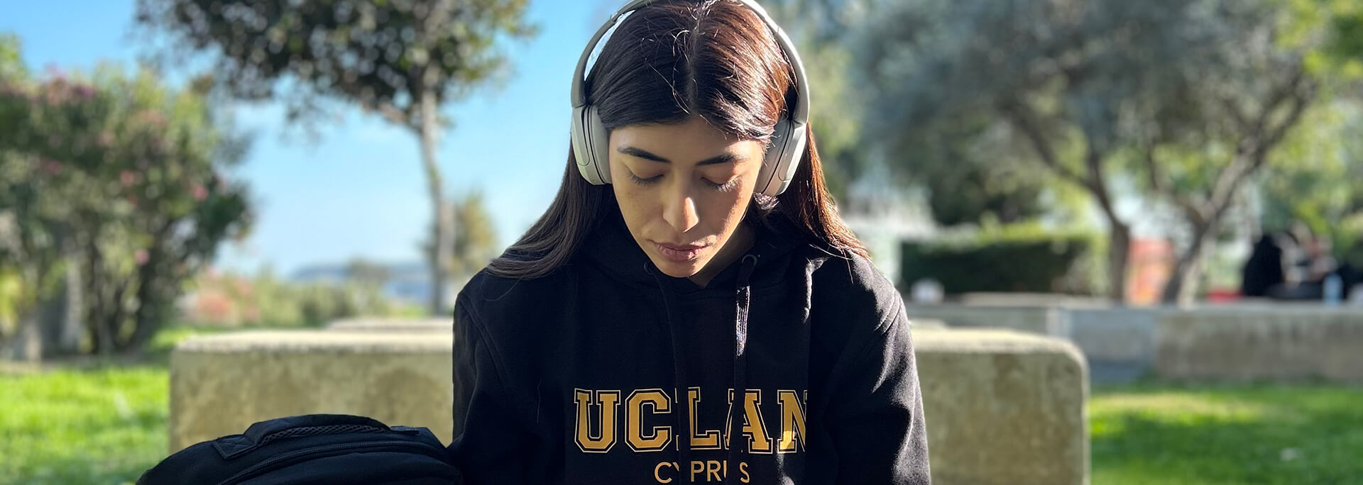 UCLan Cyprus features a modern campus in Larnaka with advanced Audio-Visual technology and versatile spaces, including lecture rooms, auditoriums, PC labs, Media and design studios, a Moot Court, a fitness center, a library, dining facilities, and nearby student accommodation.
